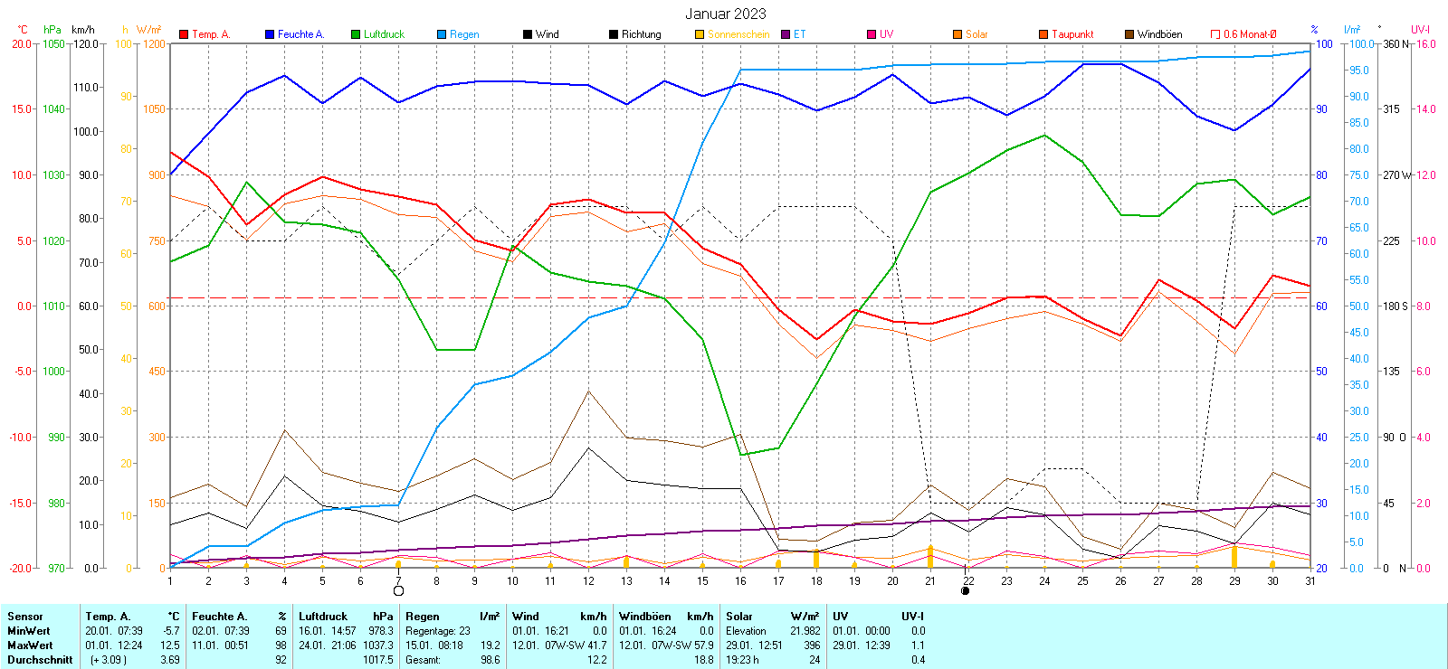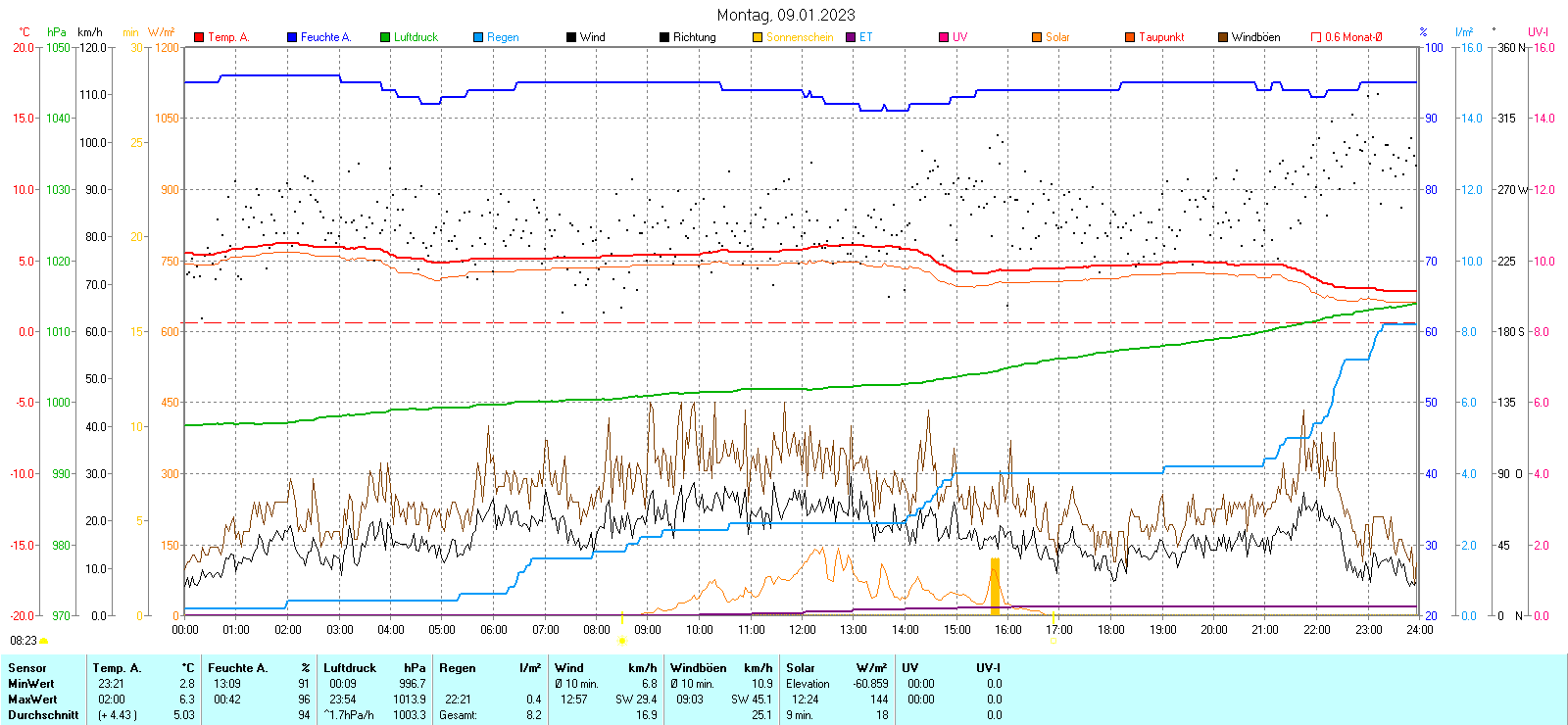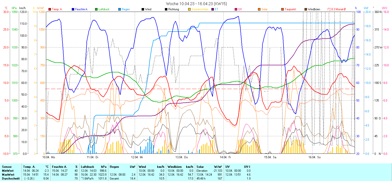 Regen-Sonnenschein Diagramm | Anzahl der kalten Tage 2014-2023 |