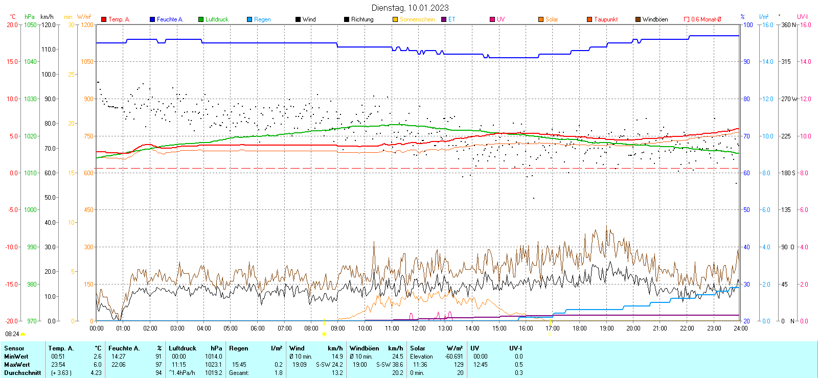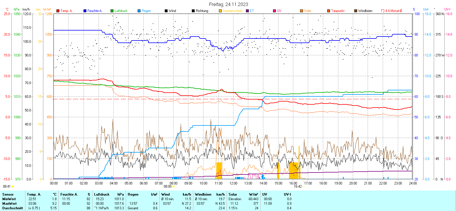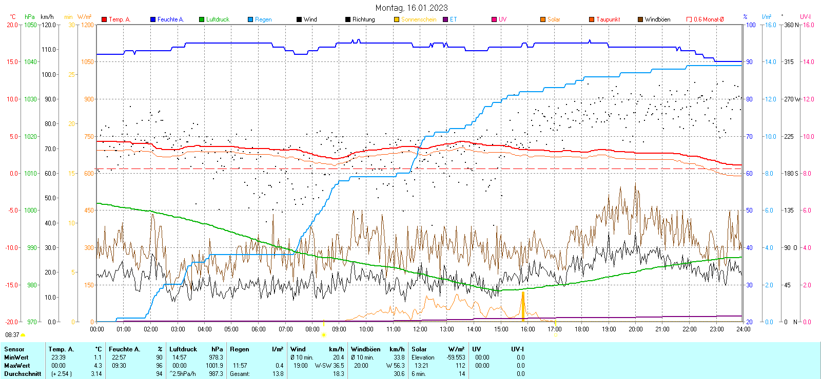 Regen-Sonnenschein Diagramm | Anzahl der kalten Tage 2014-2023 |