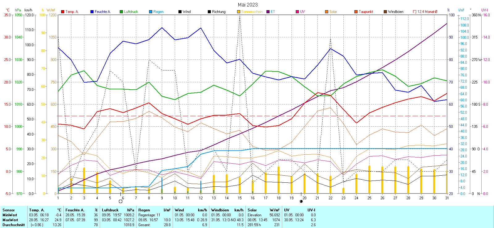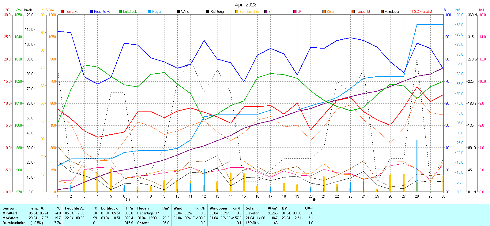 Tages, Wochen- und Monatsgraphiken |