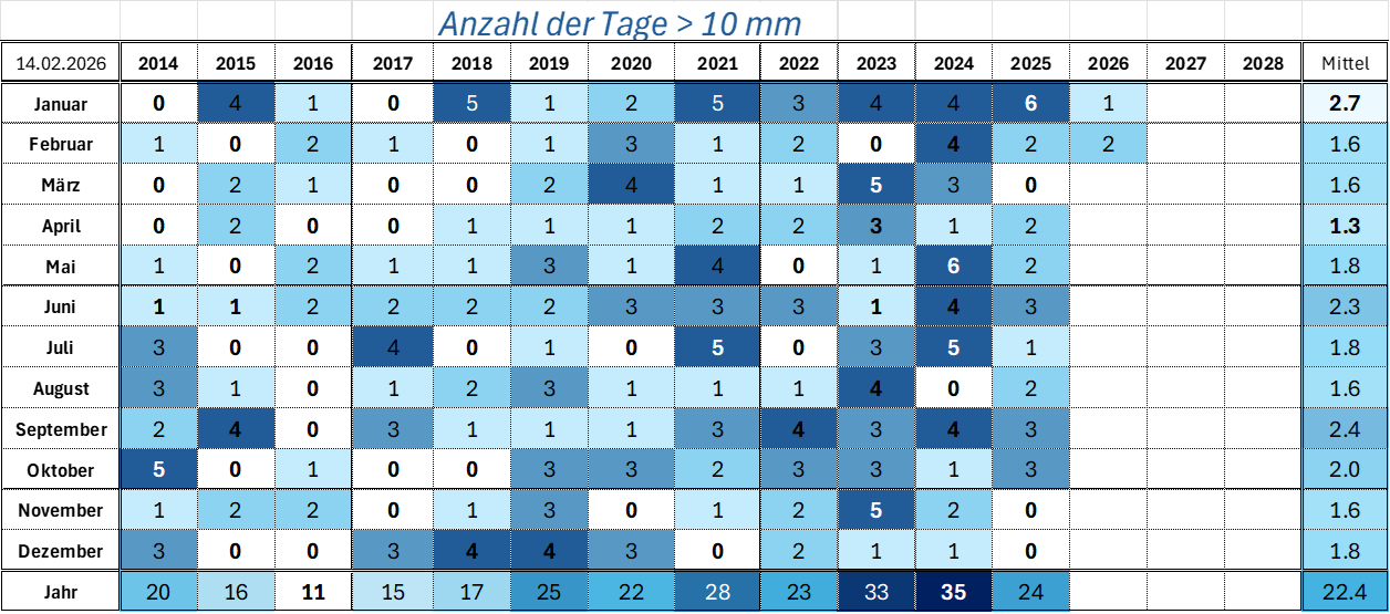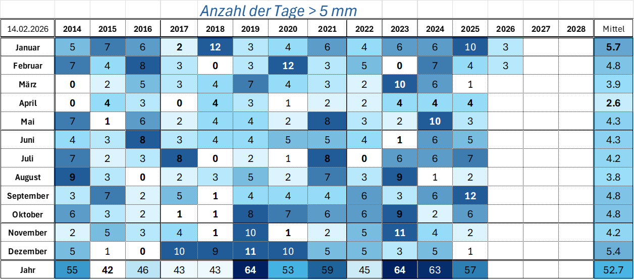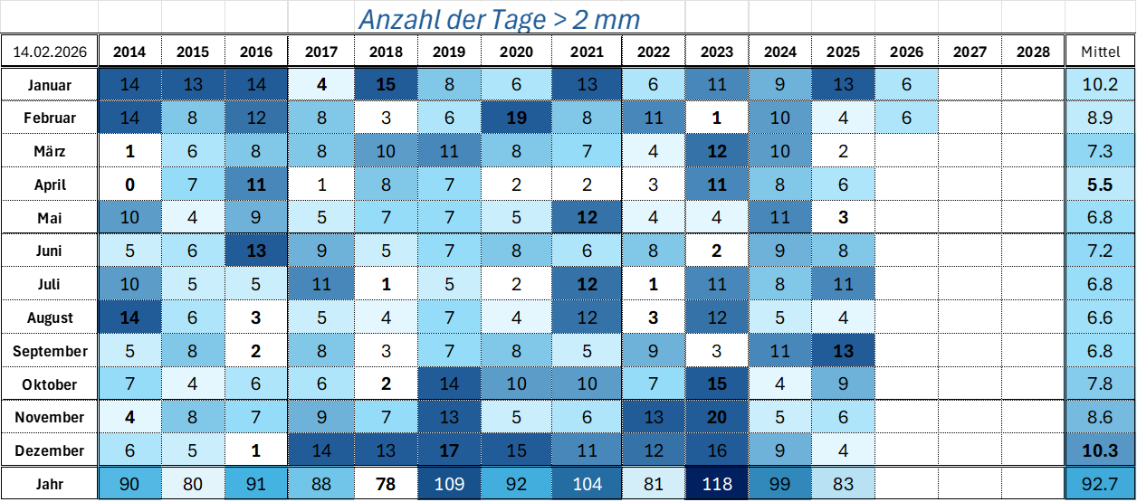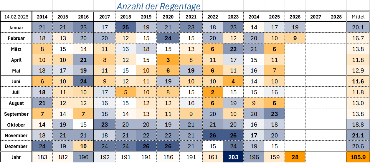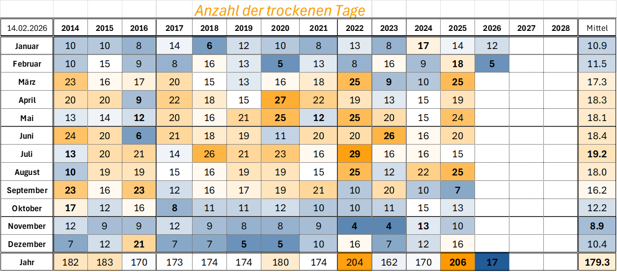 | Anzahl der Trocken- und Regentage |