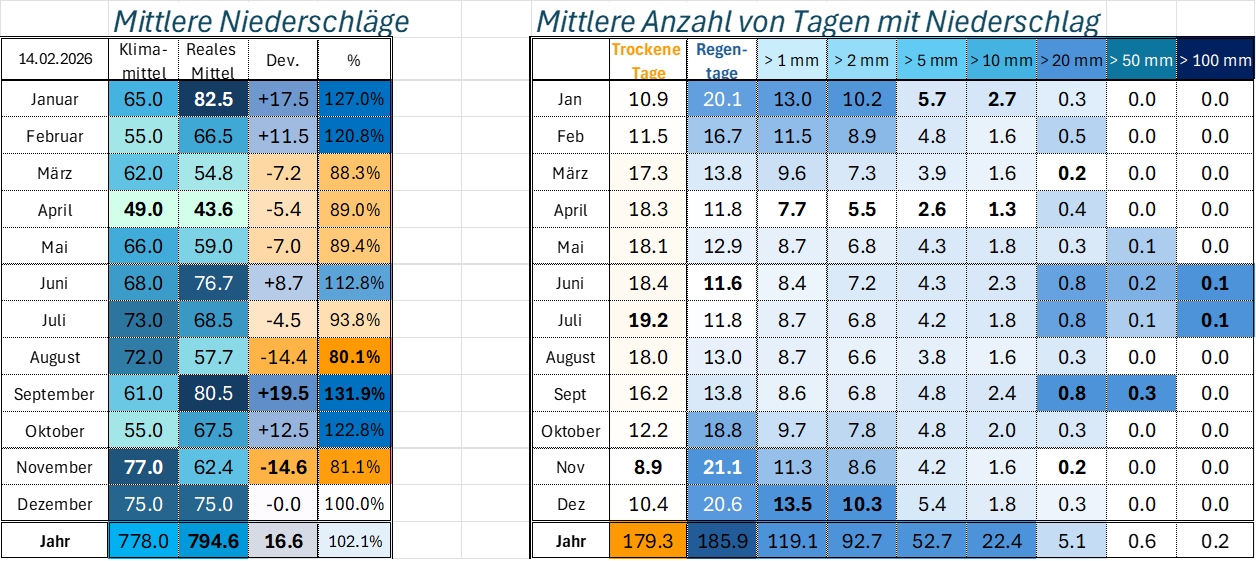| Klimawerte Niederschläge |
